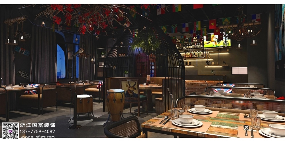 富陽水泥工業風清吧設計裝修效果圖