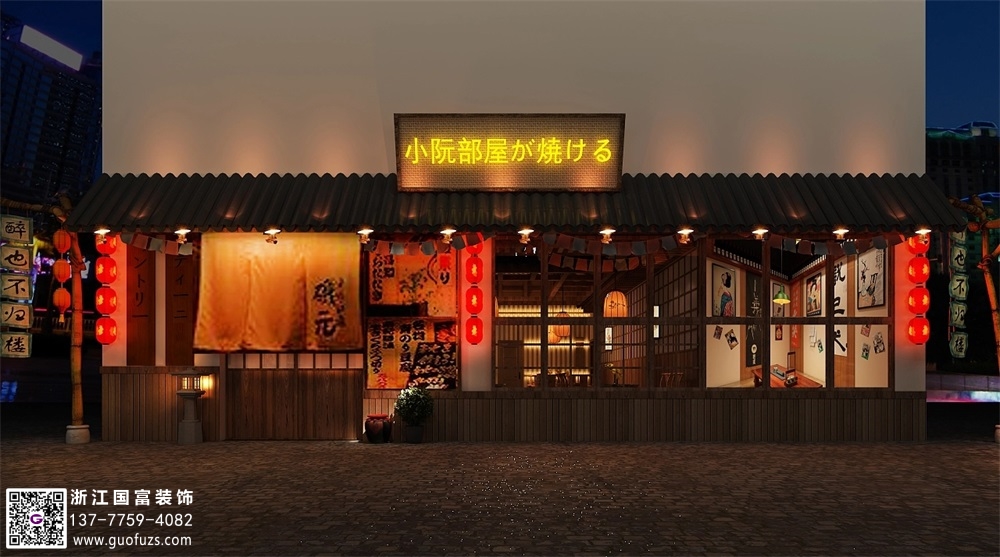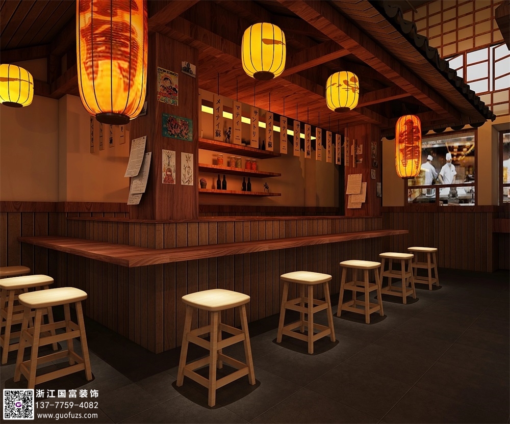 日式海鮮燒烤餐廳裝修設計案例效果圖