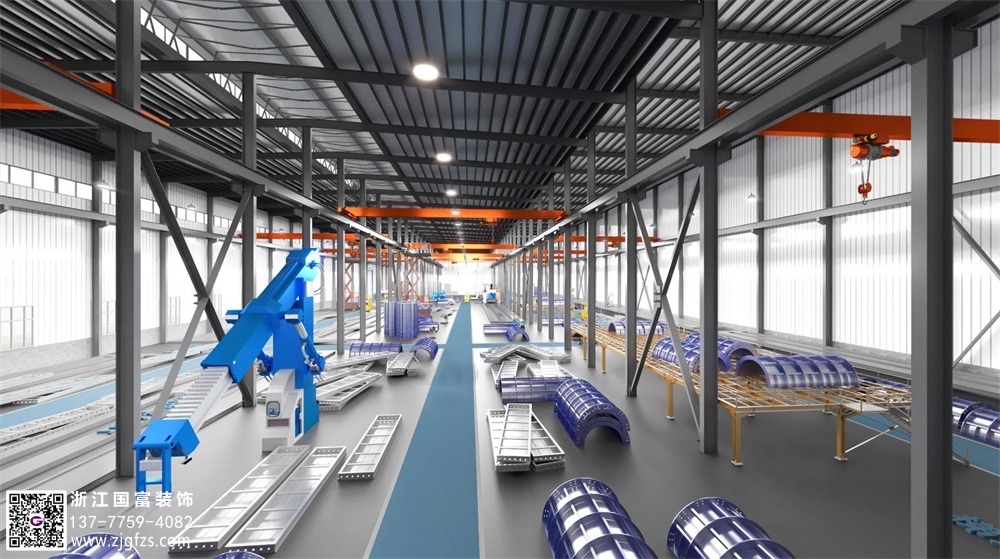金屬科技企業(yè)鋼構(gòu)廠房裝修設(shè)計(jì)案例效果圖